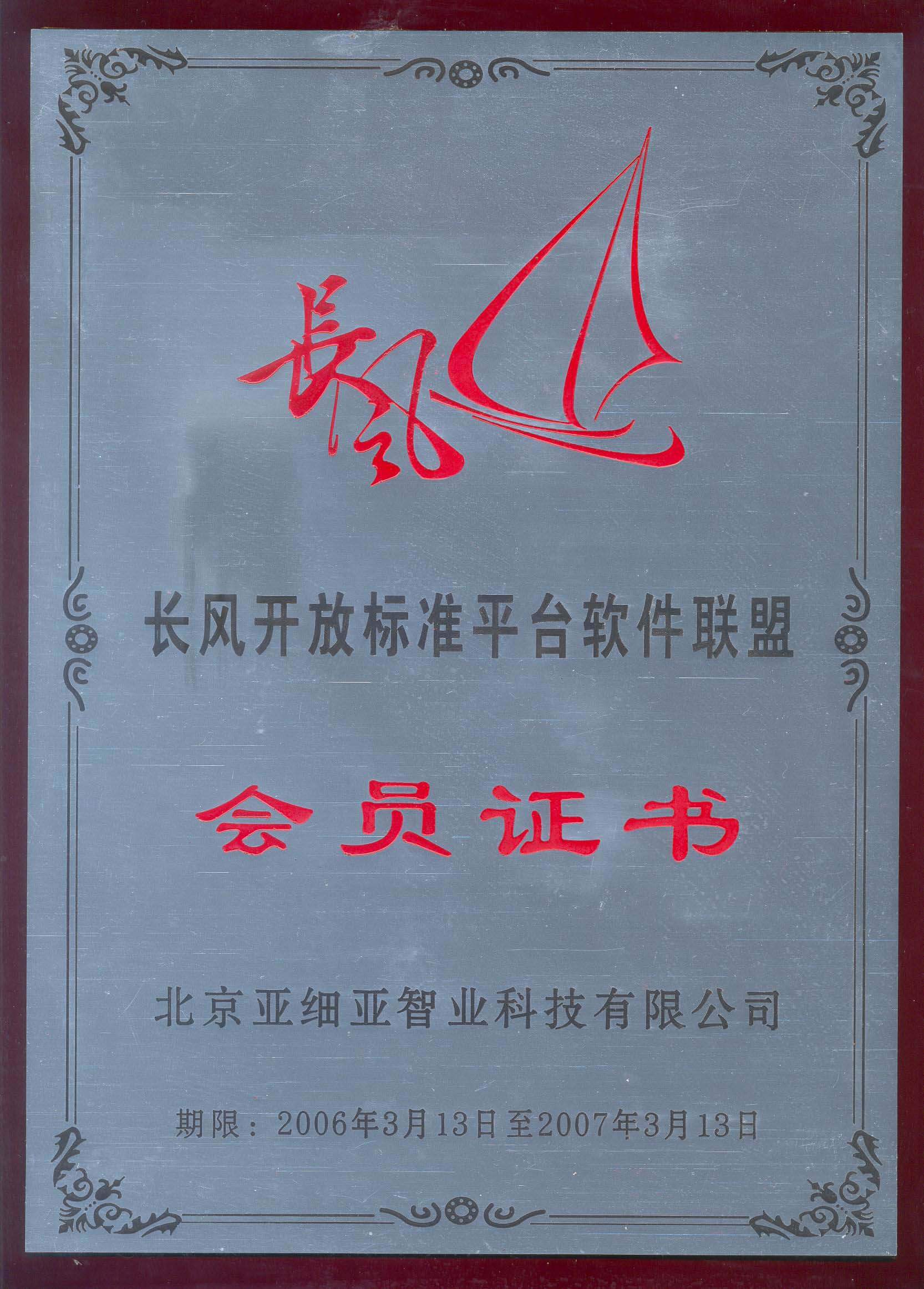 長風(fēng)會(huì)員證書